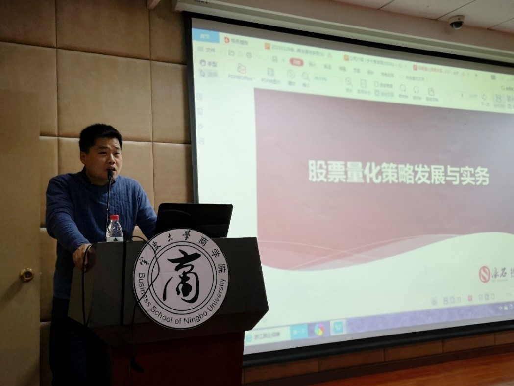 2019年11月2日,钟国宝导师应邀在宁波大学商学院发表主题讲座:股票量化发展策略发展与实务。