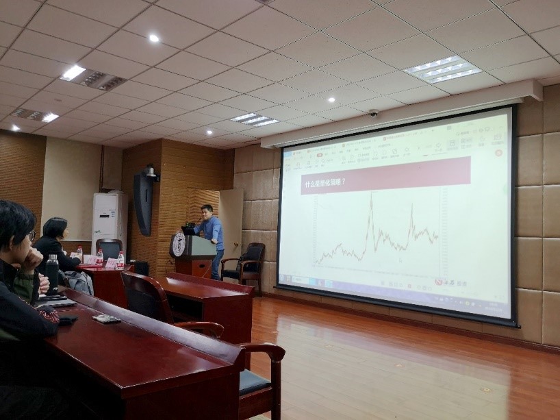 钟国宝结合自己的工作实际经验,深入浅出地为同学们展示了量化投资的发展概况。使同学们了解了量化投资的相关概念、从它的发展趋势展望量化投资的未来。